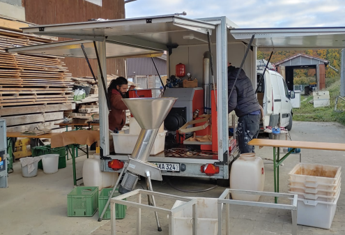 Wir bieten Allen, die Möglichkeit ohne eigenes Obst in den Genuss von heimischen Saft zu kommen. Der Saft kostet je Bag-in-Box 5 Liter 10 € (bei 10 Stück je 9 €). Ungeöffnet sind die Behälter gut ein Jahr haltbar.