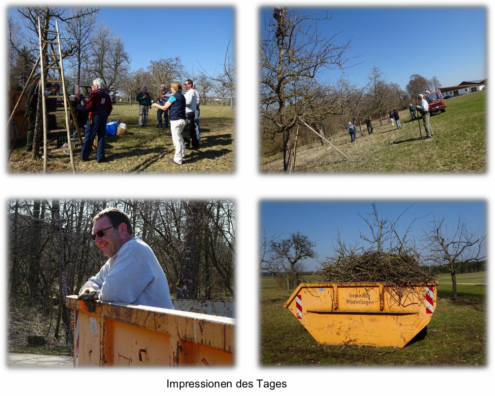 Bei wie bereits erwähnt optimalen Wetter ging den 15 Helfern die Arbeit unter Anleitung der Fachwarte des Obstbauvereins Heiner Schuler und Wilfried Kissling rasch von der Hand, so dass gegen Mittag das vorgesehen Arbeitspensum geschafft war.