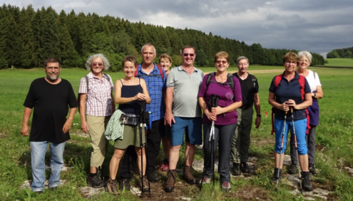 Ausgangspunkt und kultureller Höhepunkt der Rundwanderung unter Leitung von Wanderführer Dieter Schempp war die im Jahre 2007 erbaute Kapelle „Maria Mutter Europas“ auf dem Gnadenweiler in Bärenthal, der kleinsten Gemeinde im Landkreis Tuttlingen. 16 Wanderbegeisterten konnte Wanderführer Dieter Schempp dort die Geschichte der Kapelle erläutern.
