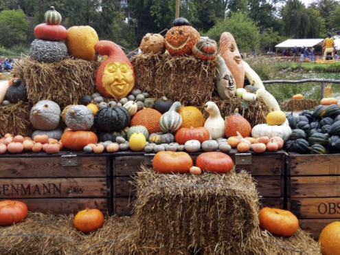 Den ersten Busstopp gab es am Blühenden Barock in Ludwigsburg. Zum Besuch der weltgrößtem Kürbisausstellung im Ambiente des Barockschlosses – -gartens des Ludwigsburger Schlosses hatten sich neun Wanderfreunde entschlossen. Dort bestaunten sie 450.000 Kürbisse, drapiert und modelliert zu allem was mit Musik zu tun hatte. Es gab auch allerlei kulinarische Gerichte aus Kürbis zu entdecken.